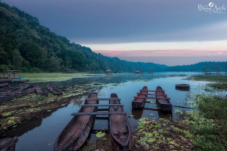 After your trek, hop into a traditional wooden canoe and glide across the misty waters of Lake Tamblingan, where silence and serenity wrap around you like a warm breeze. The calm lake, surrounded by dense jungle and sacred temples, feels like something out of a dream.