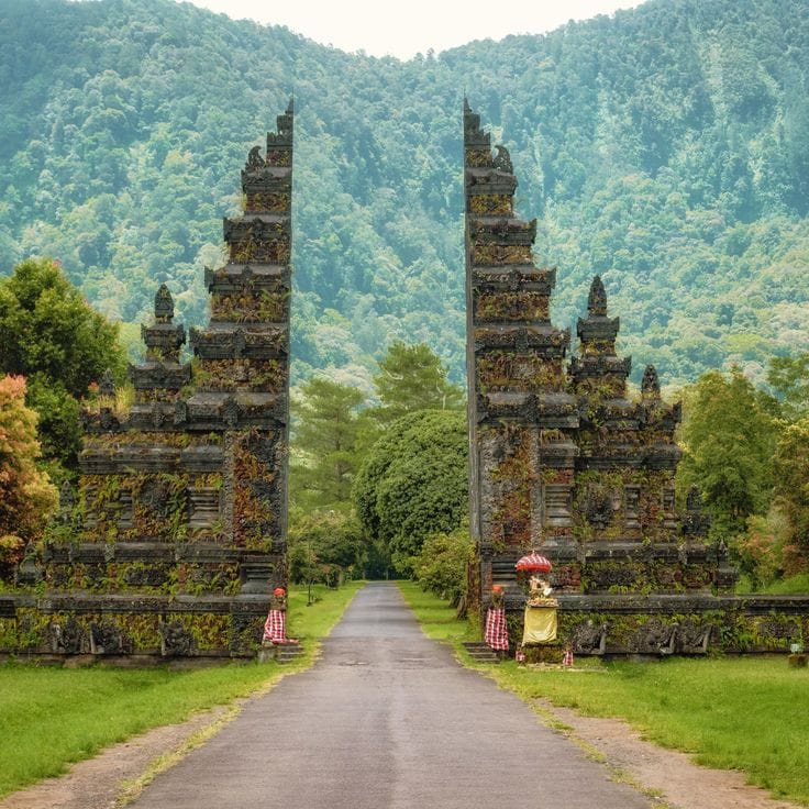 Next, we cruise over to Taman Ayun Temple in Mengwi — a peaceful royal temple surrounded by a wide moat, pretty gardens, and tall pagoda-like shrines called Meru. It’s calm, it’s quiet, and it’s full of history (built way back in 1634!).